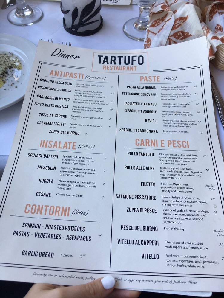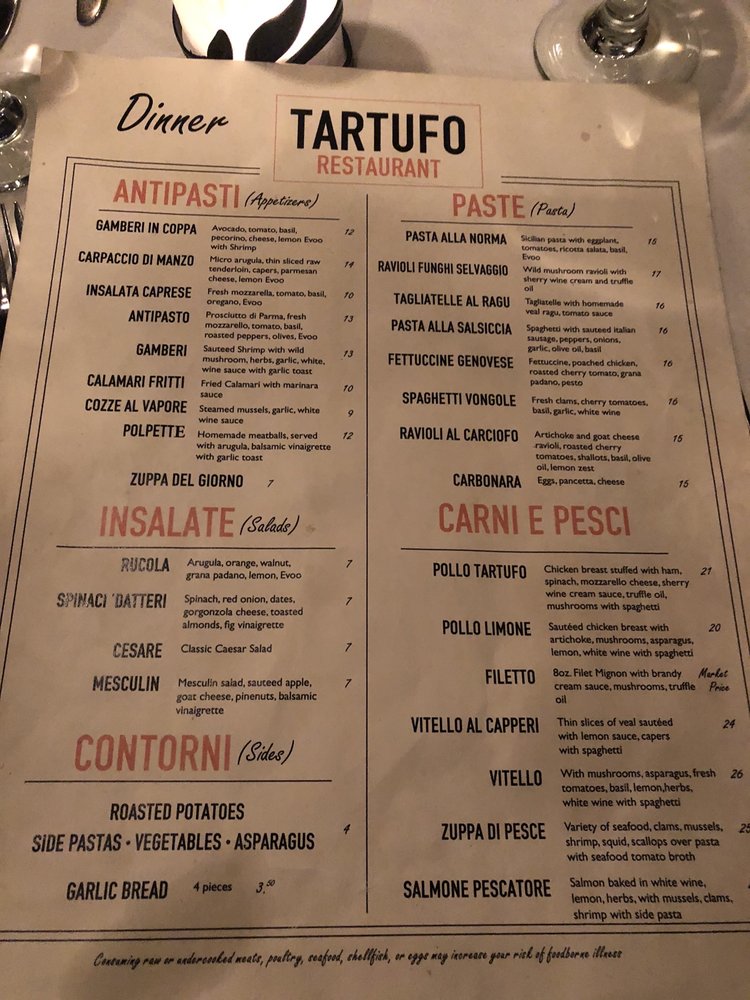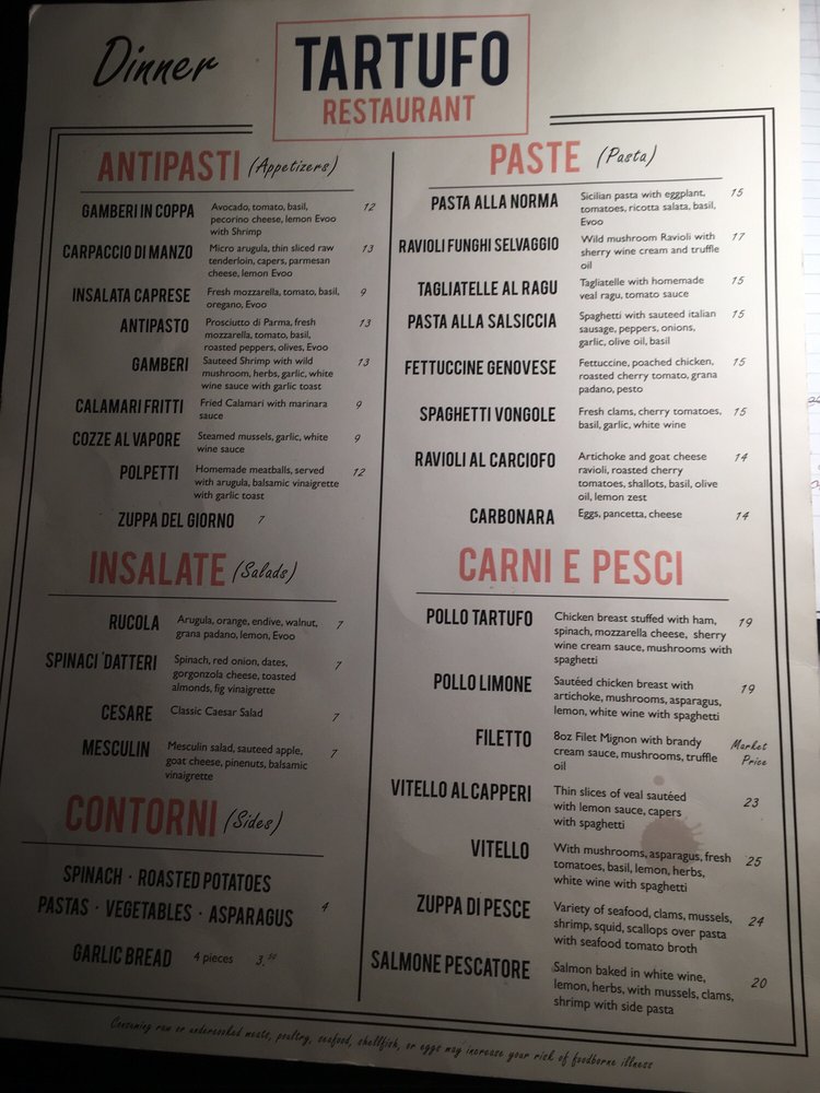 Tartufo, located in Washington, DC, offers a delightful Italian dining experience with a variety of options for all types of diners. With its intimate and classy ambiance, Tartufo provides a perfect setting for a cozy dinner. The menu includes vegan and vegetarian options, making it inclusive for all guests. Customers rave about the accommodating owner who goes above and beyond to cater to special dietary needs, ensuring a memorable dining experience. The standout dishes like the Carbonara and Vitello receive high praise for their exquisite flavors and generous portions. Despite being a one-man show, the owner manages to deliver exceptional service, making diners feel welcomed and valued. Tartufo is truly a hidden gem in the neighborhood, offering delicious food and a relaxing atmosphere for a delightful Italian meal.